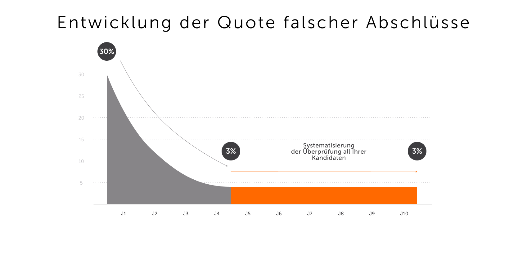 Unternehmen, Universitäten (bzw. Hochschulen) und öffentliche Einrichtungen, die eine systematisierte Überprüfung von Diplomen durchführen, verzeichnen einen sofortigen Rückgang der Fälschungsrate der Diplome ihrer Bewerber von üblicherweise zwischen 25 und 30% auf eine Rate zwischen 3 und 5 %.